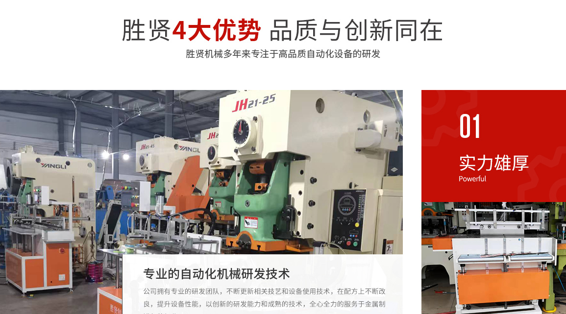 東莞市勝賢機(jī)械設(shè)備有限公司,是一家專(zhuān)業(yè)從事金屬制罐包裝行業(yè)的整套自動(dòng)化設(shè)備和模具開(kāi)發(fā)、制造與銷(xiāo)售的公司,擁有成熟的技術(shù)和創(chuàng)新開(kāi)發(fā)能力。我們擁有有一批多年從事設(shè)計(jì)、研究開(kāi)發(fā)的工程師,和設(shè)備、模具制作的技術(shù)人才。不斷推進(jìn)制罐行業(yè)向高效、環(huán)保、節(jié)能、操作簡(jiǎn)易化的方向發(fā)展。 公司主要產(chǎn)品:多次元機(jī)械手設(shè)備生產(chǎn):含片盒蓋/底自動(dòng)生產(chǎn)線,煙盒蓋/底自動(dòng)生產(chǎn)線,醫(yī)藥盒蓋/底自動(dòng)生產(chǎn)線,茶葉罐蓋圈/酒罐蓋圈自動(dòng)生產(chǎn)線,酒罐蓋自動(dòng)生產(chǎn)線、茶葉罐拍底自動(dòng)生產(chǎn)線等等。 罐身自動(dòng)扣骨機(jī)生產(chǎn):茶葉罐/酒罐/化妝品罐/內(nèi)衣罐等等. 其中多次元機(jī)械手專(zhuān)為兩片盒的生產(chǎn)和三片罐的蓋、底、蓋圈、拍底蓋等的生產(chǎn)而設(shè)計(jì),...